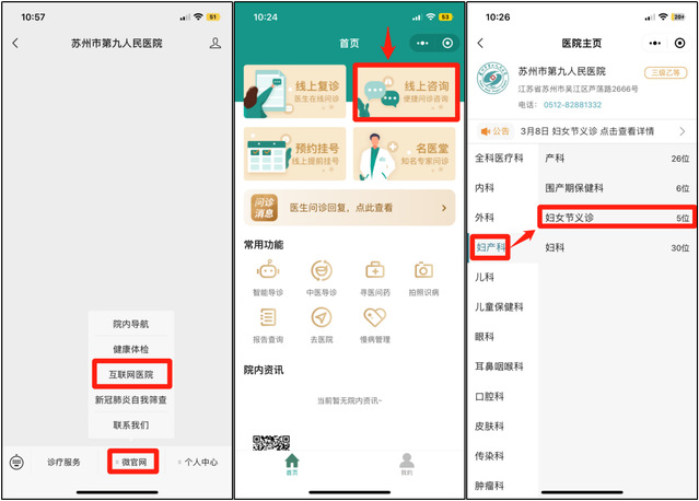 微信搜索“加勒比扑克玩法详解 ”公众号关注并打开选择“微官网”点击“互联网加勒比扑克 ”选择“线上咨询”选择妇产科---妇女节义诊-- 医生(显示有号源)--图文咨询--填写信息提交问诊--等待医生接诊。