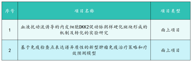 以上2个项目,获得面上项目资助