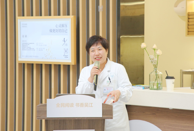 来自苏州九院皮肤科的主任沈敏娟也将自己的读书心得与生活感悟与现场人员进行了交流互动。她希望大家在繁忙的工作之余培养自己的兴趣爱好,热爱生活,提升自我,展现苏州九院人的读书风采和精神风貌。