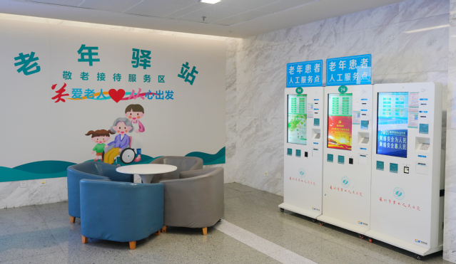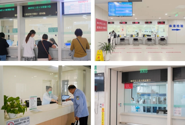 ☺挂号、药房等窗口设立敬老专窗,为80岁以上老人提供人工挂号、缴费、取药等优先服务。门诊一楼大厅东南角,设立老年驿站敬老接待专区,作为服务老人的中转区域和供老人休息。