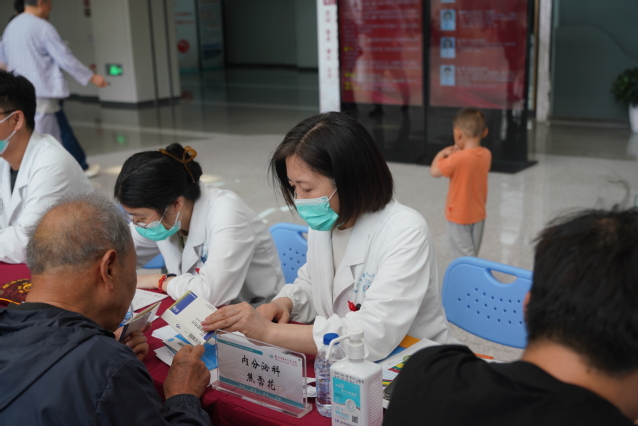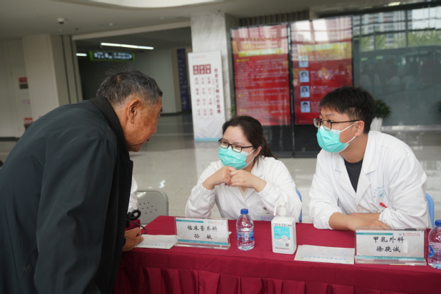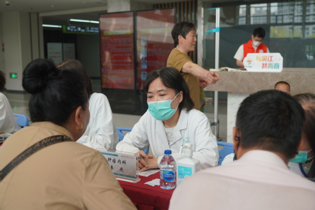 4月19日,义诊活动在苏州九院门诊一楼大厅举行。现场设置了多个科室,包括内分泌科、临床营养科、中医科、产科、皮肤科、眼科、甲乳外科等,为市民提供了全方位、多角度的健康服务。