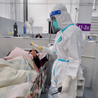 韶华不负正青春。方舱工作已入正轨,一个月来,我们不停往返于方舱和酒店之间,每天两点一线,我们从事着平凡的工作。虽然很辛苦,但很值得,感谢自己有幸成为一名医护人员,没有很伟大,只是尽了自己微薄的一份力量。舱内每天都会有出院,有时也会接诊高龄、合并多种基础疾病的患者,同时,我承担着舱内的内分泌疾病组的会诊工作,救治工作任重道远。