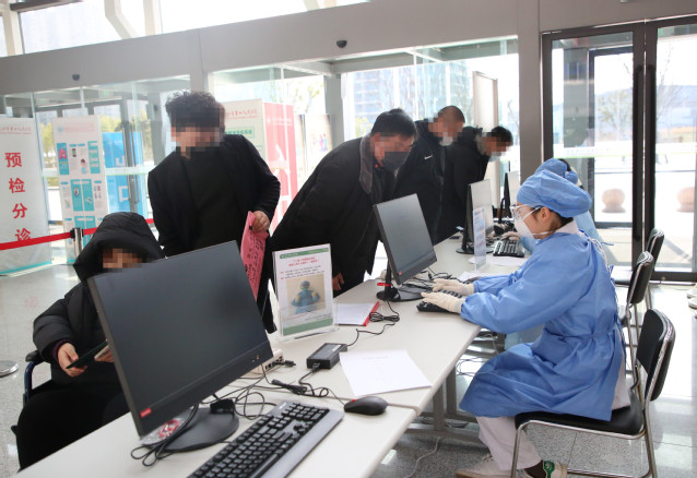 在门急诊、各住院楼出入口处,加勒比扑克 分别设立了预检分诊台,患者及家属必须出示有效身份证件或陪客证,通过电脑刷卡(身份证、市民卡),进行准确、快捷地身份识别,并配合完成体温检测和登记后才能入院。加勒比扑克 安排了志愿者组成“铜墙铁壁”,医务人员和保安24小时轮班接诊,为前来咨询、就诊的患者提供服务,切实做好筛查、检测和分诊等防控工作。