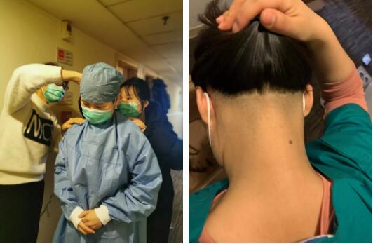 临行前男同胞们剃了光头,姑娘们虽然都已经剪去了长发,但为了更好的防护,她们再次把鬓角的头发剃去。