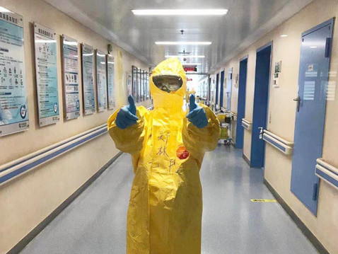 “肩上扛起责任,心里充满勇气,我不是一个人而战,我的身后有你们。为饱受病痛的病人尽一份力量,让他们早日康复,回归家园,有力量就有希望,武汉加油,中国加油!”