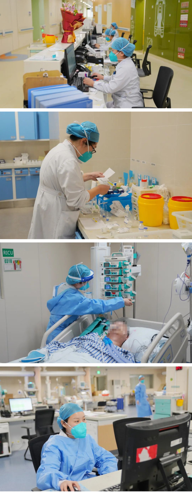 所有危重症患者集中收治,统一管理,节省资源。各幢住院楼病房进行合并和改造,各科诊疗组结对组合,共同收治新冠患者。大部分病区病床满员,医生、护士高效工作。