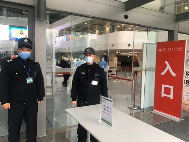 他们不是专业人员,但同样要面对繁杂的患者人群,同样面临高风险和高强度的压力,自我防护一样不可忽视。每位保安人员做到每天测量体温并及时上报,勤洗手,戴口罩,提高自我的防护意识,若出现发热、干咳、头痛、呼吸困难等症状,及时汇报当班队长。